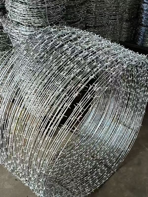 Hot dipped Galvanized / PVC/ PE Coated / Stainless Steel Barbed Wire in IOWA type, with 2 strands, 4 points. Barbs' distance 3-6 inches ( Tolerance +- 1/2" ).